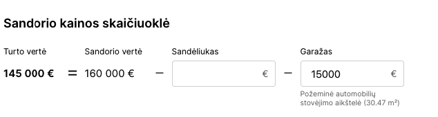 Pasirinkus įtraukti tokį sandorį, atkreipkite dėmesį į sudėtinio sandorio vertės skaičiuoklę, kur reikia atimti papildomo turto vertę, kad palyginamųjų lentelėje gautume “grynąją” buto kvadrato kainą.